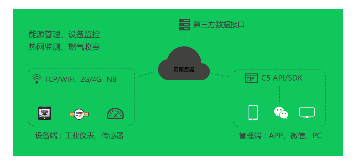 除了以服务形式提供设备监控,能源管理外,还对外输出全套方案,帮助传统设备厂家智能化转型,建立企业独立的云端智能管理平台。